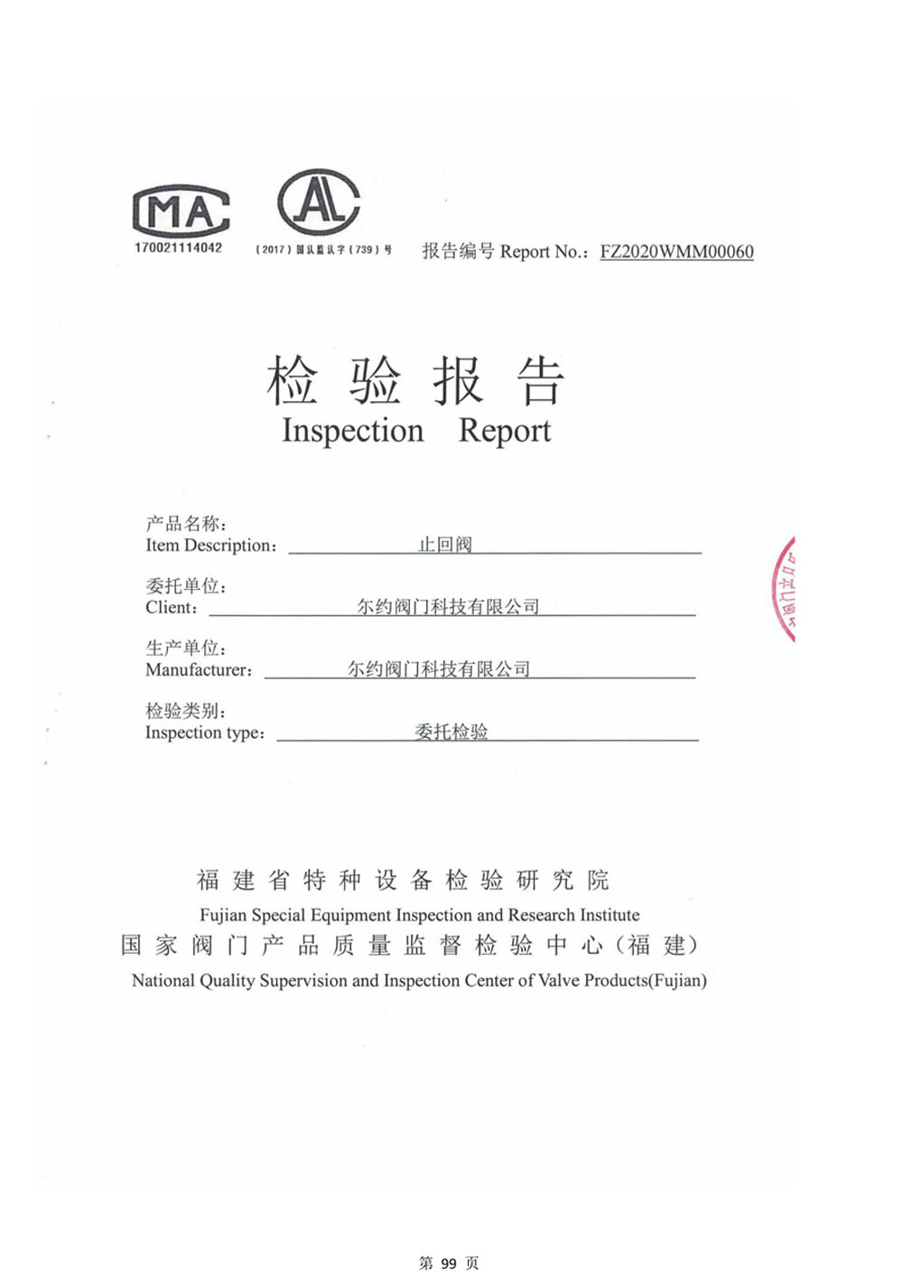 銅止回閥檢驗(yàn)報(bào)告