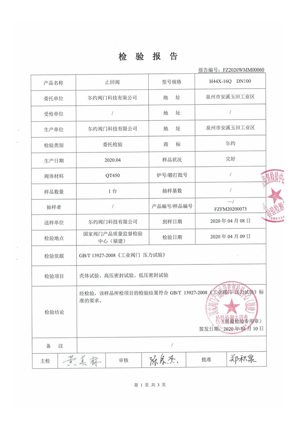 止回閥檢驗(yàn)報(bào)告