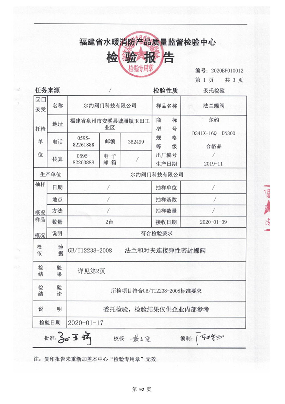 法蘭蝶閥檢驗(yàn)報(bào)告