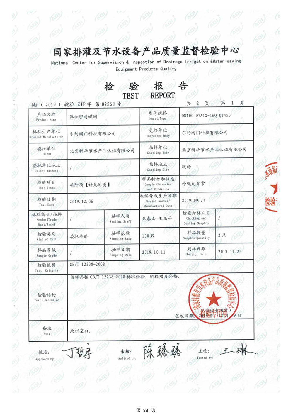 法蘭蝶閥檢驗(yàn)報(bào)告