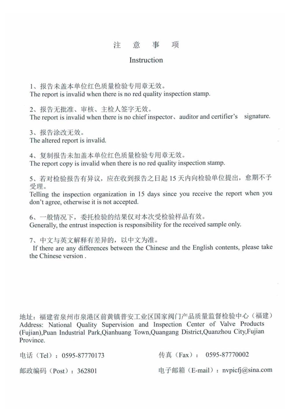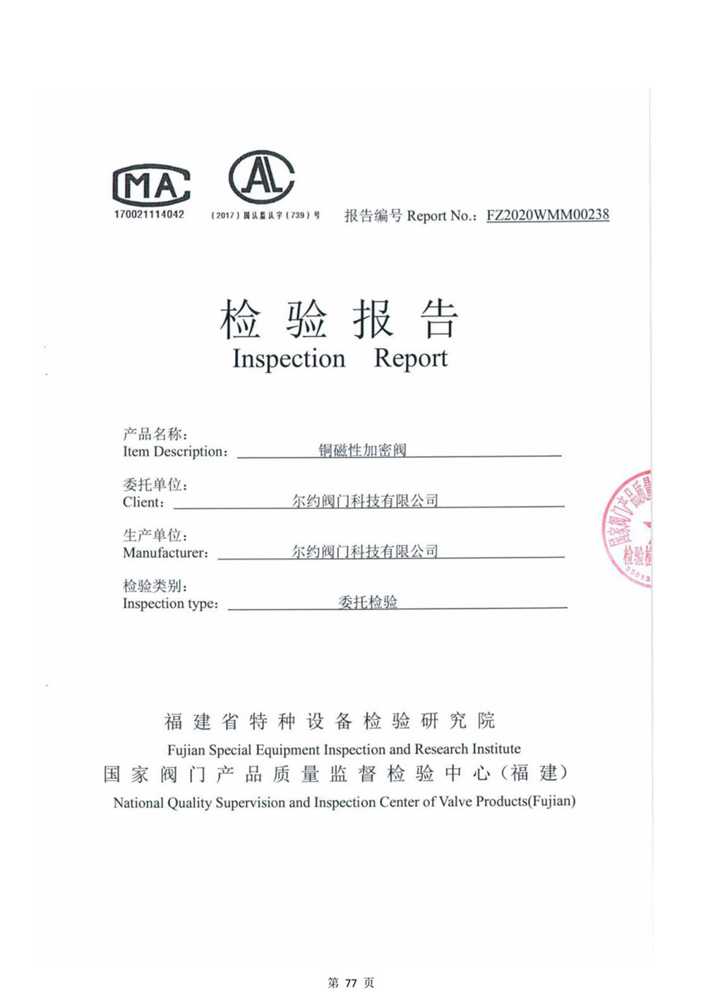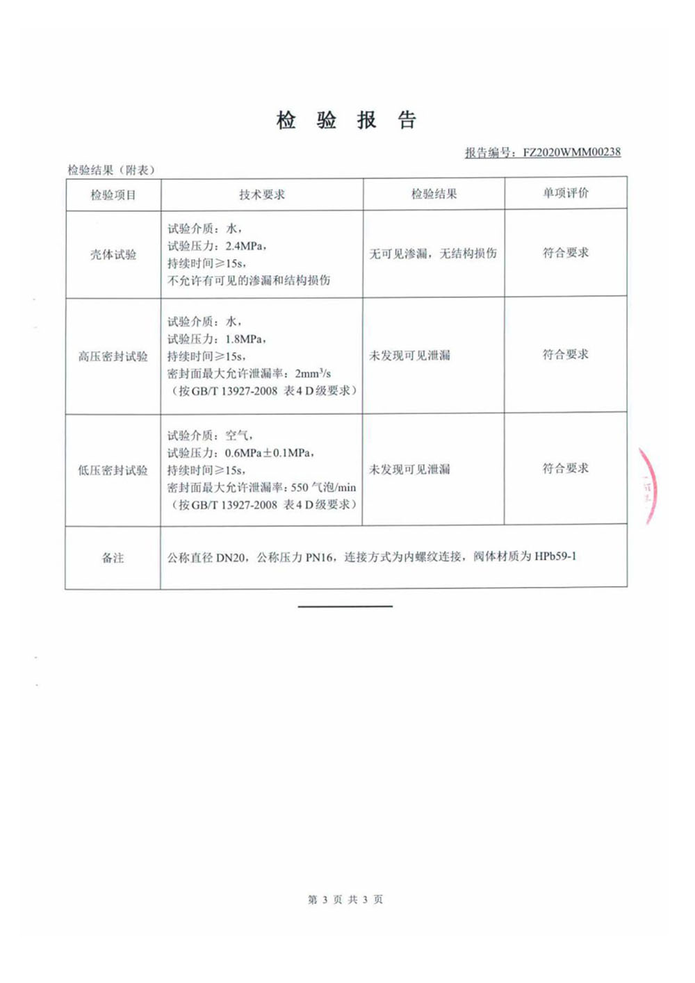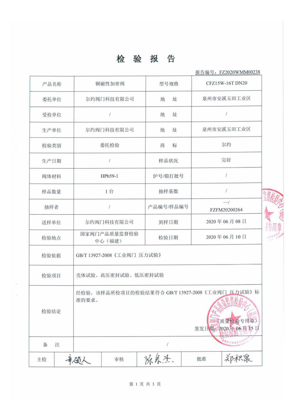 銅磁性加密閥檢驗(yàn)報(bào)告