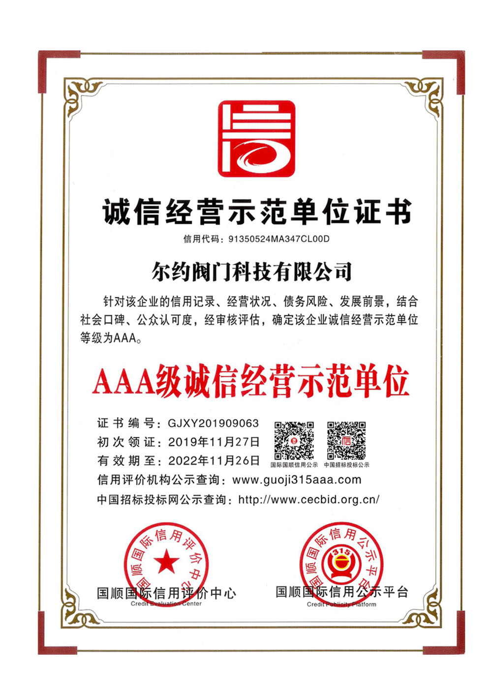 AAA級質(zhì)理服務(wù)信譽企業(yè)