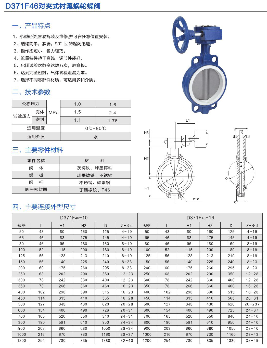 對(duì)夾式襯氟蝸輪蝶閥 D371F46