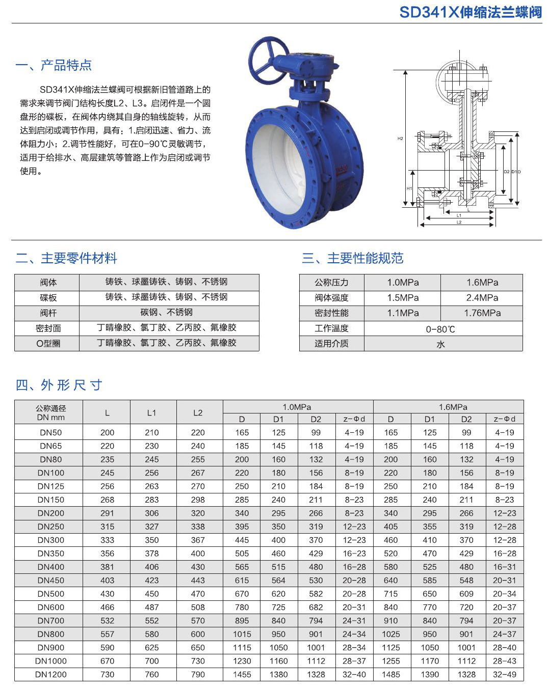 SD341X伸縮法蘭蝶閥可根據(jù)新舊管道路上的需求來調(diào)節(jié)閥門結(jié)構(gòu)長度L2、L3。