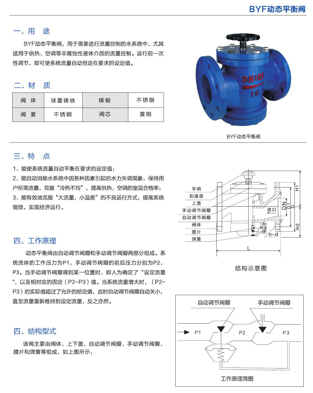 BYF動態(tài)平衡閥,用于需要進行流量控制的水系統(tǒng)中,尤其適用于供熱、空調等非腐蝕性液體介質的流量控制。