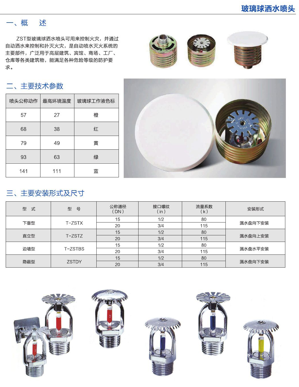 ZST型玻璃灑水噴頭可用來控制火災(zāi),并通過自動灑水來控制和撲滅火災(zāi),是自動噴水滅火系統(tǒng)的主要部件,廣泛用于高層建筑、賓館、商場、工廠、倉庫等各類建筑物,能滿足各種危險等級的防護要求。