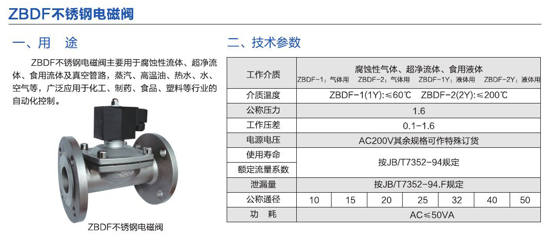 ZBDF不銹鋼電磁閥主要用于腐蝕性流體、超凈流體、食用流體及真空管路,蒸汽、高溫油、熱水、水、空氣等,廣泛應(yīng)用于化工、制藥、食品、塑料等行業(yè)的自動(dòng)化控制。
