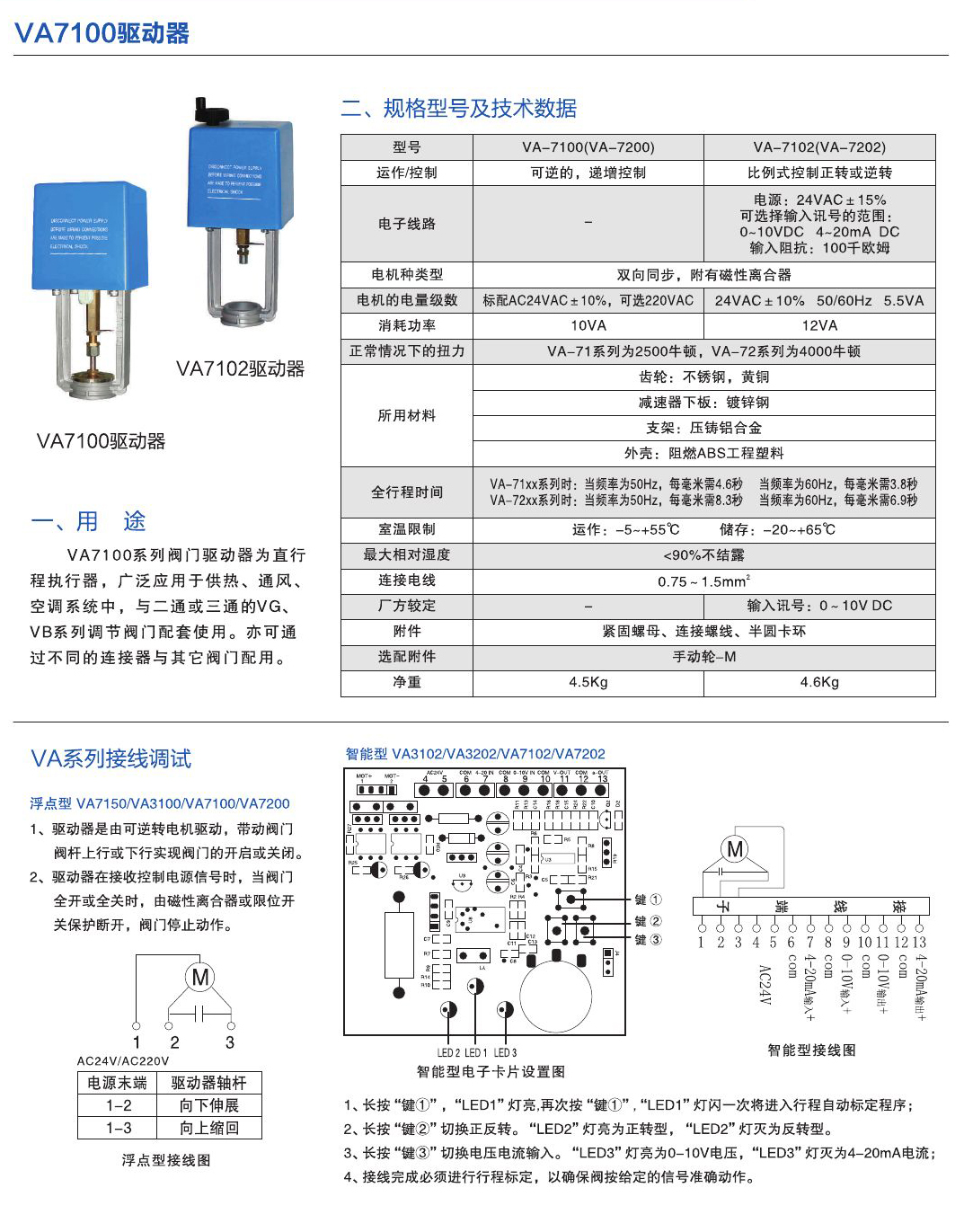 VA7102系列閥門驅(qū)動(dòng)器為直行程執(zhí)行器,廣泛應(yīng)用于供熱、通風(fēng)、空調(diào)系統(tǒng)中,與二通或三通的VG、VB系列調(diào)節(jié)閥門配套使用。